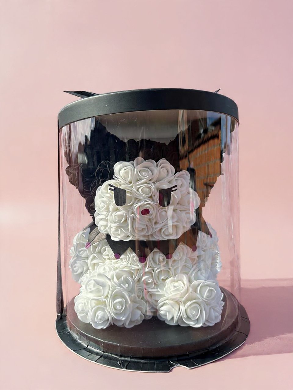 Kuromi de rosas de 25 cm en caja de acetato para preservar y tarjeta dedicatoria